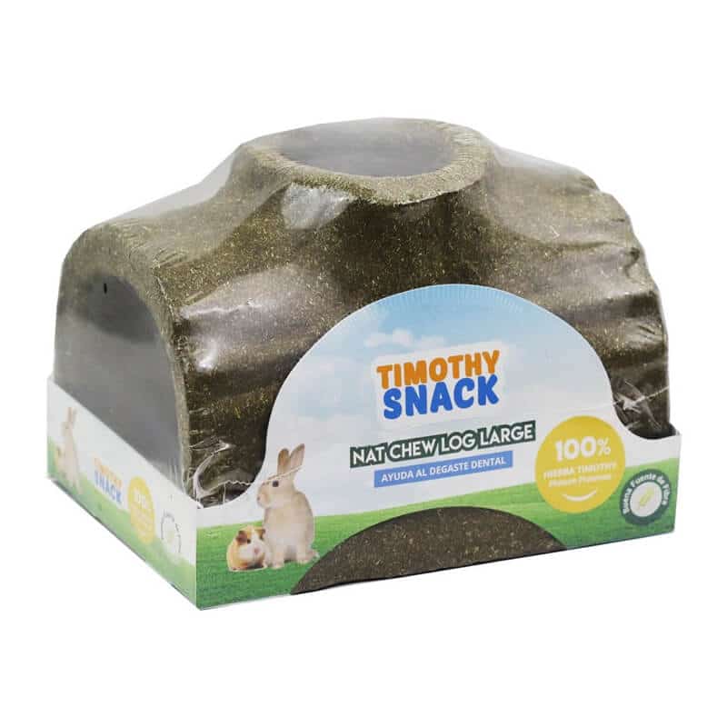 Snack con forma de túnel de tronco perfecto para enriquecer el hábitat de tu conejo o roedor.
