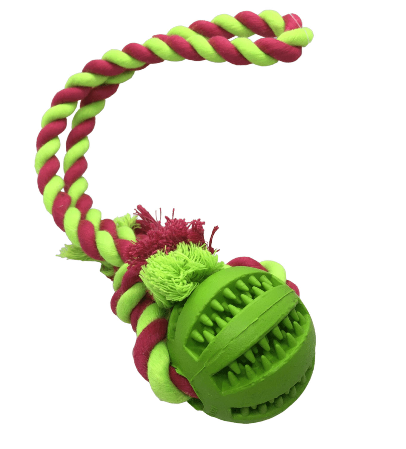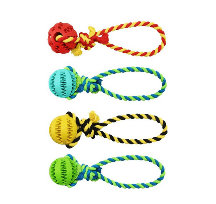 Entretenido juguete para perros de pelota y cuerda, ideal para limpiar los dientes de tu mascota y atrapar snacks.